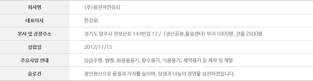 »óÈ£¸í : (ÁÖ)¿ëõÀÚ¿¬À¯¸® ¤ý´ëÇ¥ÀÚ : ÇѰ­È¸ ¤ýº»»ç ¹× °øÀå : °æ±âµµ ¾çÁֽà õº¸»ê·Î 143¹ø±æ 17